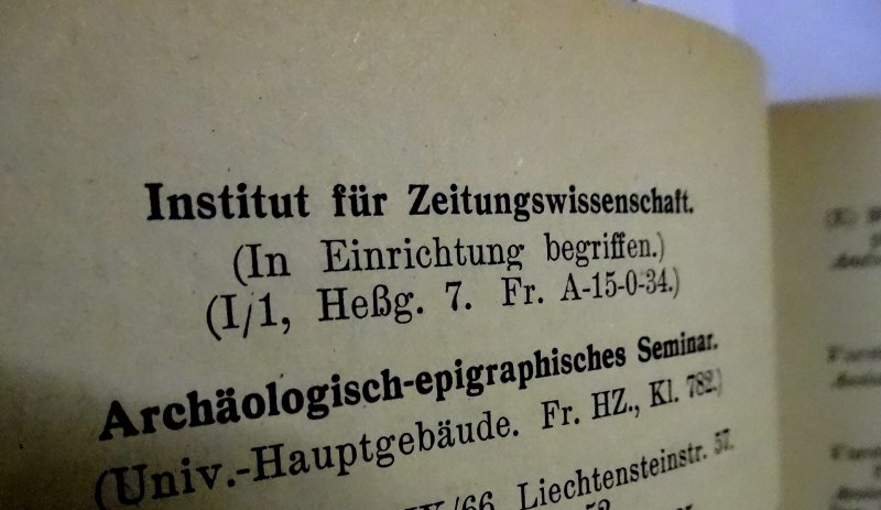 Das Institut für Zeitungswissenschaft im Personal- und Vorlesungsverzeichnis der Universität Wien, Sommersemester 1942