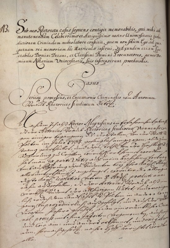Der Fall erschien dem Rektor so bedeutsam, dass er in der Matrikel der Universität Wien dazu einen mehrseitigen Bericht eintragen ließ: "Casus seriesque processus et executionis criminalis den Antonium Straub rhetorices studiosum betreffend".