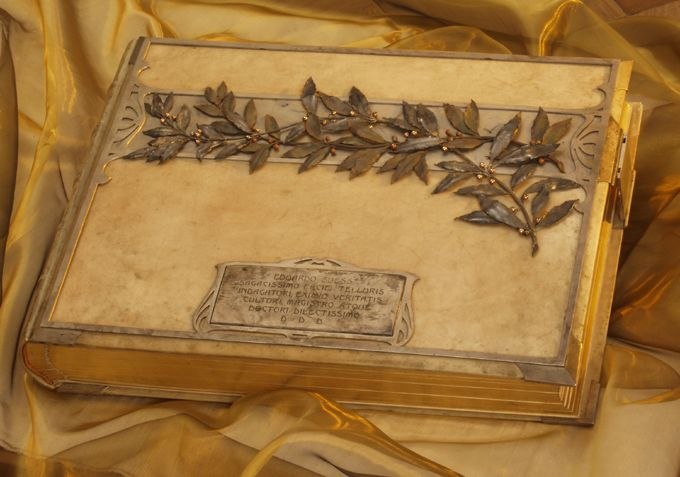 Gespeichert von Thomas Maisel am 3. Februar 2015 - 18:25 1901 Die Schüler und Freunde des Wiener Geologieprofessors Eduard Suess widmeten ihm zum 70. Geburtstag ein prunkvoll gestaltetes Album mit Porträtfotografien aller Gratulanten.