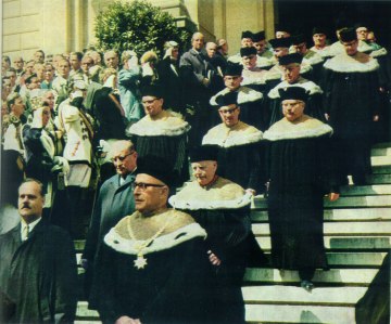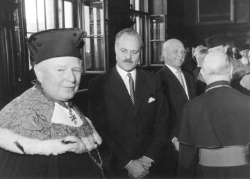 Feierliche Inauguration des Rektors Fritz Schwind: Unterrichtsminister Theodor Piffl-Perčević mit Rektor Fritz Schwind