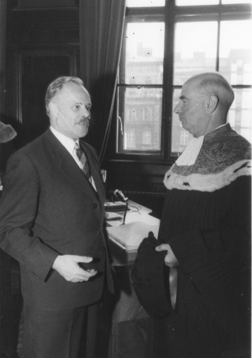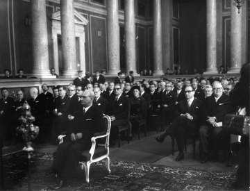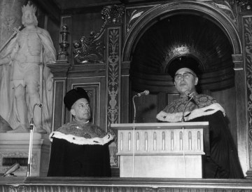 Prorektor Albin Lesky und Minister Theodor Piffl-Percevic bei der feierlichen Inauguration des Rektors Karl Fellinger