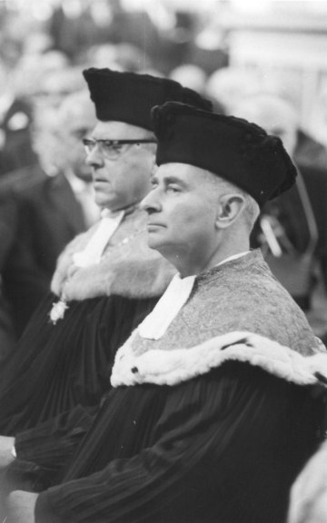 Rektor Fritz Schwind und Prorektor Karl Hörmann bei der feierlichen Inauguration des Rektors Fritz Schwind