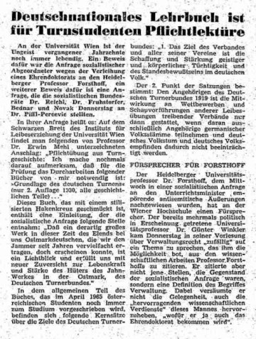 „Deutschnationales Lehrbuch ist für Turnstudenten Pflichtlektüre“, Zeitungsartikel in „Arbeiter-Zeitung“ vom 30. April 1965