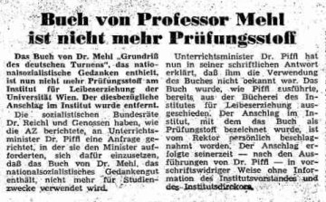 „Buch von Professor Mehl ist nicht mehr Prüfungsstoff“, Zeitungsartikel in „Arbeiter-Zeitung“ vom 23. Mai 1965
