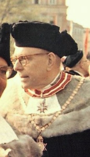 Collatio academica des Universitätsbundes Alma Mater Rudolphina, 1968: Hermann Gmeiner und Altrektor Karl Hörmann (mit Rektorserinnerungszeichen)