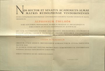 Unterrichtsminister Theodor Piffl-Perčević bei der feierlichen Inauguration des Rektors Fritz Schwind