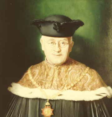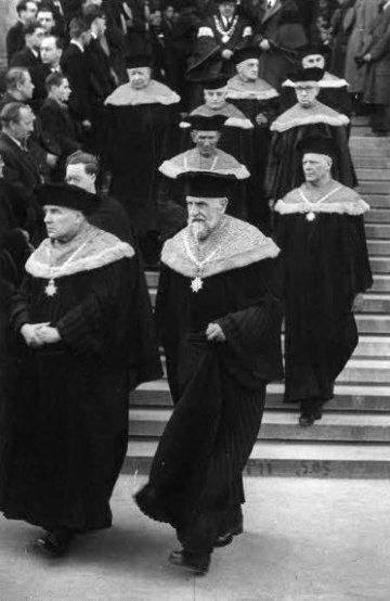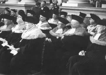 Ehrendoktoratsverleihung für Kardinal Eugene Tisserant: Würdenträger der Universität Wien, darunter Altrektoren mit dem Rektorserinnerungszeichen (am Band)
