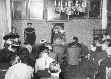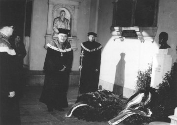 Enthüllung des Denkmales für Sigmund Freud im Arkadenhof der Universität Wien durch Rektor Johann Radon, 1955