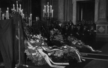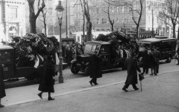 Trauerfeier für den im Amt verstorbenen Rektor Wilhelm Czermak: Trauerzug zum Dornbacher Friedhof vor der Universität