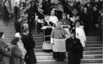 Ehrendoktorat der Katholisch-theologischen Fakultät für Kardinal Eugene Tisserant: Auszug der Festgäste, ganz vorne im Bild der Dekan der Kath.-theol. Fakultät Carl Johann Jellouschek