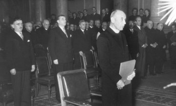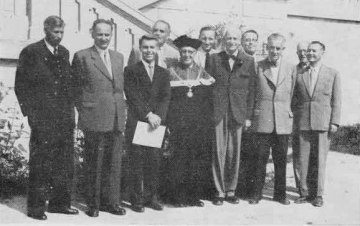 Eduard Miloslavich (Miloslavić, Miloslavic) als UNRRA-Spezialarzt im Gespräch mit Prof R. V. Christie und Bundeskanzler Ing. Figl
