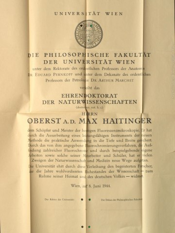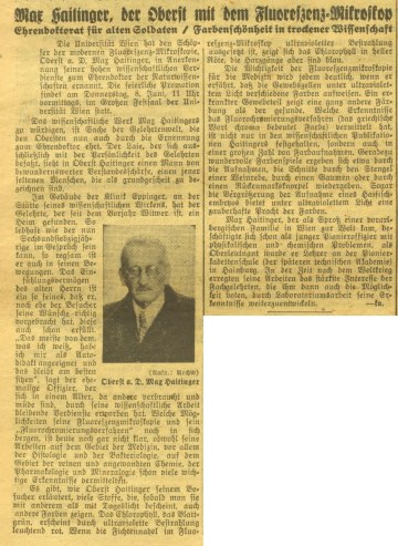 Zeitungsartikel „Max Haitinger, der Oberst mit dem Fluoreszenz-Mikroskop“, in: Illustrierte Kronen-Zeitung, 07.06.1944