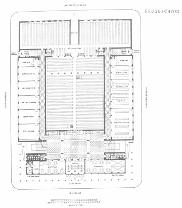 1951 Universitätsbibliothek Neubau, Grundriss Erdgeschoss (Arch. Nobis/Dreier, Wettbewerbssieger) – unrealisiert