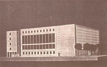1951 Universitätsbibliothek Neubau, Projektskizze Ecke Universitätsstraße/Helfersdorferstraße (Arch. Nobis/Dreier, Wettbewerbssieger) – unrealisiert