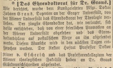 Eintrag des Ehrendoktorats für Johann Graus im Promotionsprotokoll der Katholisch-Theologischen Fakultät, 16.12.1903