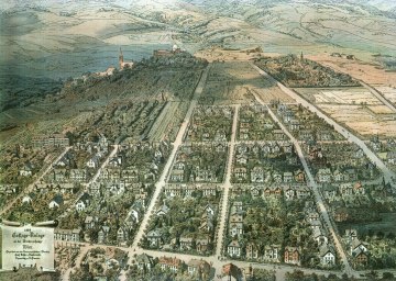 Luftbild der Universitätssternwarte aufgenommen von der Kirchturmspitze der Weinhauser Kirche, um 1888