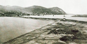 1875 wurde die Donau in einem breiten Bett gefasst. Das Bild zeigt die Donau wenige Tage vor dem Durchbruch zum neuen Flussbett. Daneben entstand ein breites Überschwemmungsgebiet.