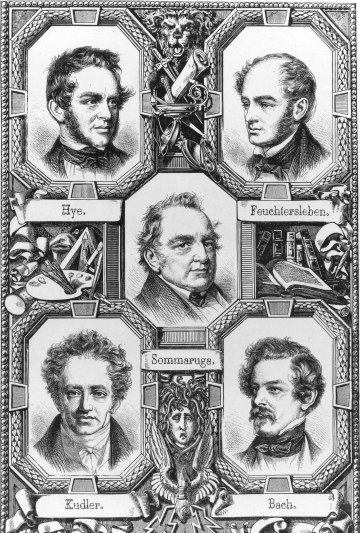 Erinnerungsbild zur Revolution 1848: Anton Hye, Ernst von Feuchtersleben, Franz von Sommaruga, Joseph Kudler, Alexander Bach