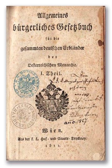 Franz von Zeiller „Allgemeines bürgerliches Gesetzbuch für die gesammten deutschen Erbländer der Oesterreichischen Monarchie“, 1811