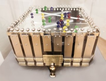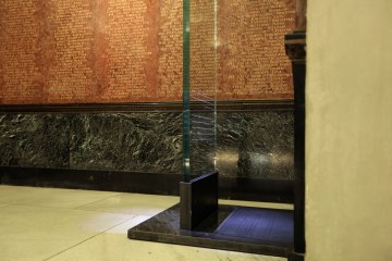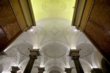 Installation „Nobelpreis und Universität Wien – Gruppenbild mit Fragezeichen“ von Bele Marx & Gilles Mussard (2006) in der Aula, Ansicht 2017