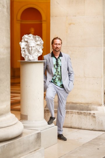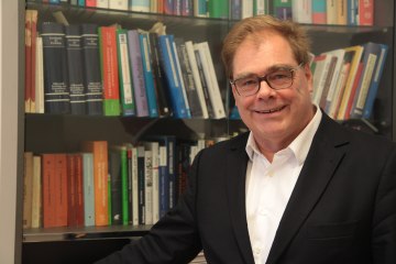 Denkmal für Charlotte Bühler im Arkadenhof der Universität Wien mit dem Künstler Thomas Baumann (2016)
