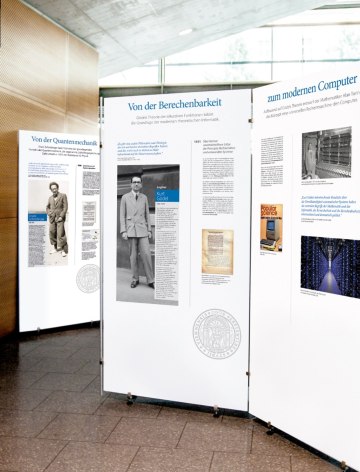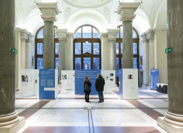 Die Ausstellung „Innovation durch Grundlagenforschung“ in der Aula des Hauptgebäudes der Universität Wien