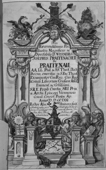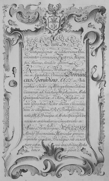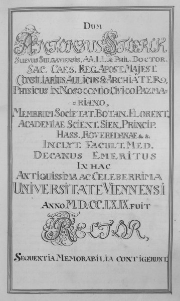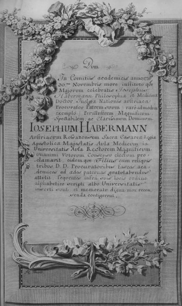 Rektorenblatt (Memorabilia) von (Johann) Joseph Maximilian Dietmann (Mediziner, Universitäts-Bibliothekar, 1764/65 Rektor)