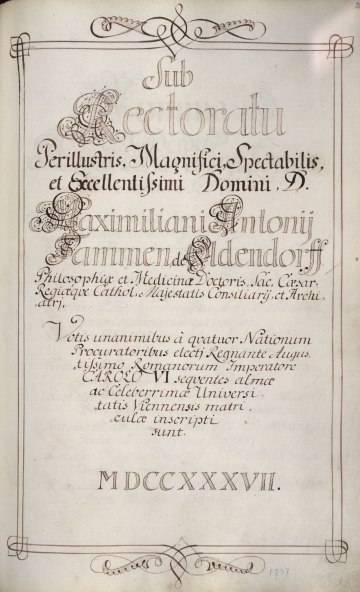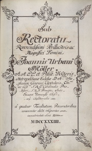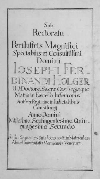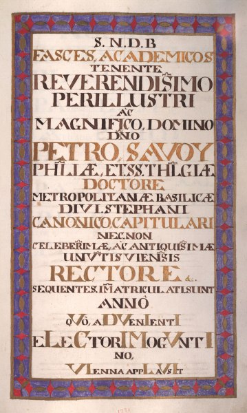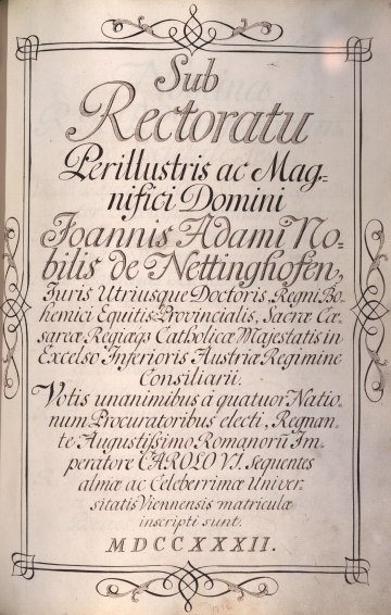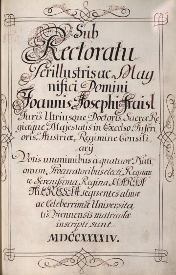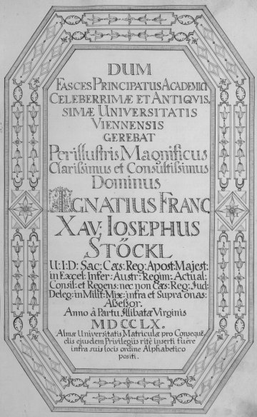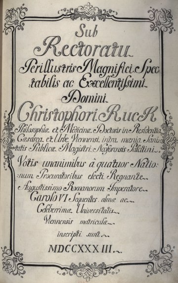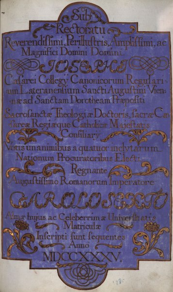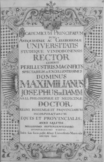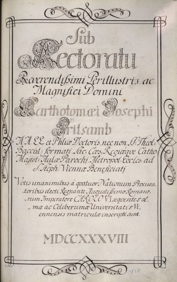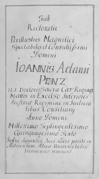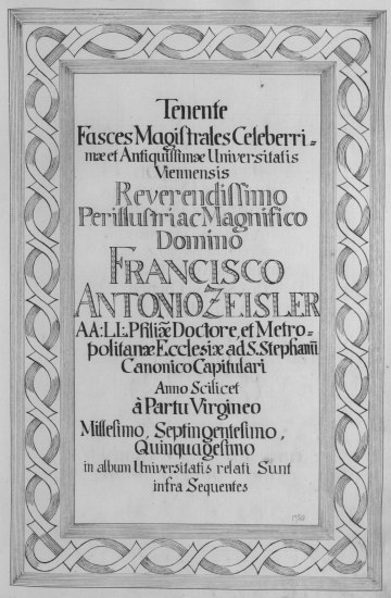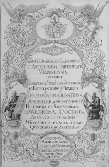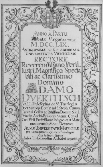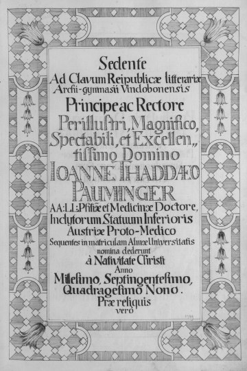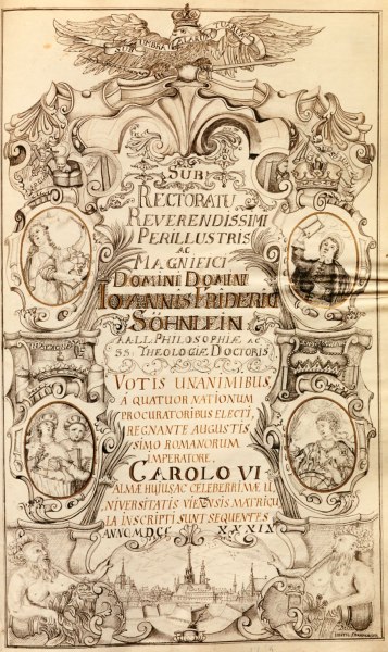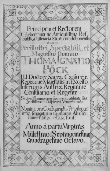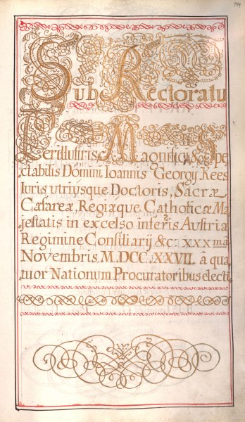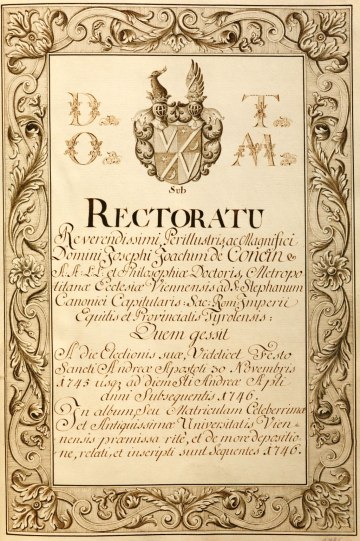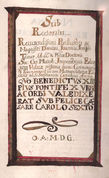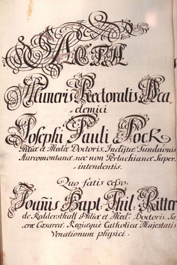 Rektorenblatt von Joseph Paul Pock (Rektor 1728/29) und Johann Baptist Philipp Ritter von Reddersthall (Rektor 1729)