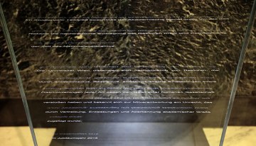 Text der Glasstele vor der Rektorentafel, Kunstinstallation „Rektorenfasten – ins licht gerückt“ (gestaltet von Bele Marx & Gilles Mussard), 2017