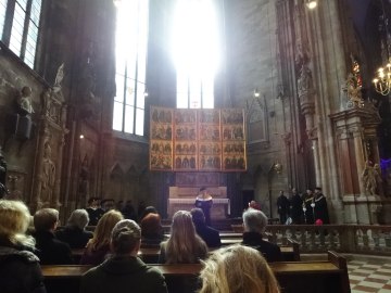 Johannes-Tor der Erinnerung am Campus (ehemals AKH) zwischen Hof 2 und Spitalgasse 2, Blick von Spitalgasse hinein, Zustand 2014