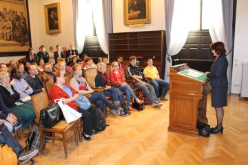 Die erste Dekanin der Katholisch-Theologischen Fakultät, die Moraltheologin Sigrid Müller, beim Empfang der Erstsemestrigen im Oktober 2014