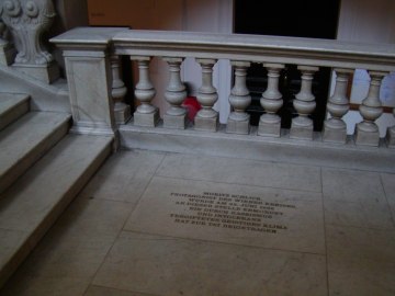 Inschrift zur Erinnerung an die Ermordung Moritz Schlicks 1936 auf der Philosophenstiege der Universität Wien, errichtet 1993