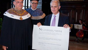 Ivar Ekeland bei der Verleihung des Ehrendoktorats der Universität Wien durch Rektor Heinz W. Engl und Laudator Walter Schachermayer vom Institut für Mathematik