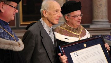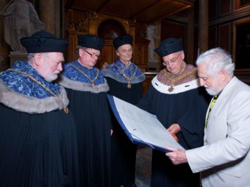 Carl Djerassi (1923–2015) bei der Verleihung des Ehrendoktorats der Universität Wien durch Rektor Heinz W. Engl, Dekan Horst Seidler, Dekan Harald Rindler und Dekan Bernhard Keppler