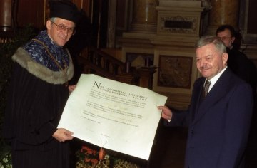 Abraham Malamat bei der Verleihung des Ehrendoktorats durch Dekan Franz Römer Gespeichert von katharina kniefacz am 13. Juni 2016 - 23:40