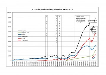Den Reformen der 1970er Jahre, die eine Öffnung und Demokratisierung der Universitäten durchsetzten, folgte dann ein explosionsartiges Wachstum hin zur „Massenuniversität“. Im Wintersemester 1971/72 verzeichnete die Universität Wien erstmals über 20.000 Studierende (20.129) - mehr als die Hälfte aller Studierenden an österreichischen Universitäten. Die Anzahl der Promotionen im selben Studienjahr erreichte mit 1.156 jedoch lediglich den Stand der Zwischenkriegszeit.