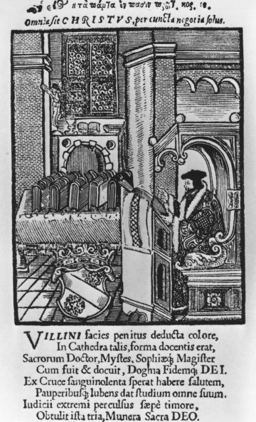 In 1578 the Royal Library’s prefect, Hugo Blotius, names this library, the library of the Duke’s College (collegium ducale) and Johann Fabri’s library as the most important in Vienna. His vision was to unite all these collections in one central library. Bishop Johann Fabri’s library was considered one of the most important humanistic libraries north of the Alps. Fabri bequeathed it to the collegium trilingue he had founded, but the downfall of the institution already began shortly after his death. The collections were then divided up between the Arts Library and the coderie Goldberg.