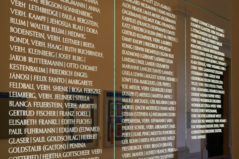 Denkmal für die im Nationalsozialismus vertriebenen Geschichte-Studierenden und -Lehrenden der Universität Wien ("Wenn Namen leuchten", Iris Andraschek 2022), Detail der Namensliste
