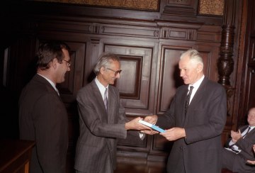 Deans and rector at the appointment ceremony of Hans Mayr and Helmut Zilk as honorary senators of the University of Vienna