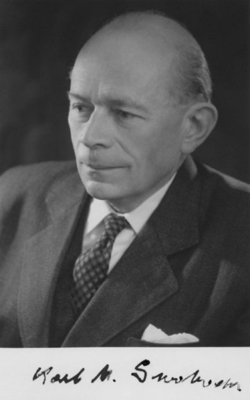 Unveiling of the monument to Sigmund Freud in the Arkadenhof (arcaded court yard) of the University of Vienna by Rector Johann Radon, 1955