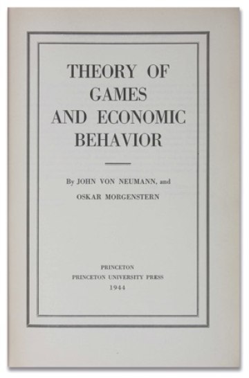 John von Neumann and Oskar Morgenstern “Theory of Games and Economic Behavior”, 1944. The book became the “bible” of game theory.
