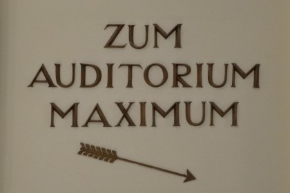 Auch auf der symbolischen nahm das austrofaschistische Regime – direkt und indirekt – auf die Universität Wien Einfluss: Der Abschnitt der Ringstraße, an dem das Hauptgebäude der Universität Wien liegt, wurde vom „Ring-des-12.-November“ – zur Erinnerung die Ausrufung der Republik – 1934 in „Dr.-Karl-Lueger-Ring“ umbenannt, gewidmet dem antisemitischen Gründer der Christlichsozialen Partei und langjährigen Wiener Bürgermeister Karl Lueger. Als prestigereiche Gebäudeerweitung wurde 1936 im Hauptgebäude der Universität Wien das Auditorium Maximum eröffnet, das nun ausreichend Platz bot, um die neuen verpflichtenden Vorlesungen und Prüfungen für alle Studierende durchführen zu können. Zur Eröffnung wurde der Wiener Erzbischof eingeladen, um den Hörsaal zu weihen. Über der Rednertribüne thronten als staatspolitische Symbole ein großes Kruzifix und das neue, der Doppeladler mit den zwei Heiligenscheinen.
