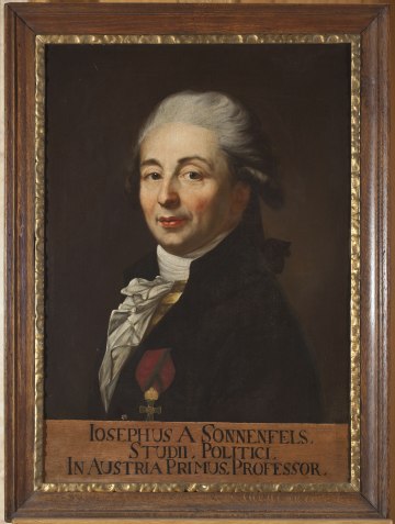 Im Jahr 1763 erhielt Josef von Sonnenfels die neu geschaffene Professur für Polizei- und Kameralwissenschaft (Staatslehre), die zunächst an der Philosophischen, seit 1784 an der Juridischen Fakultät beheimatet war. Unter „Polizey“ verstand Sonnenfels Grundsätze, „die innere Sicherheit zu gründen und zu handhaben ... „ So umfasste die Polizeiwissenschaft „zahlreiche Bereiche des Staates, wie Fragen der Sicherheit, der Bevölkerungsvermehrung, der Wohlfahrt, Erziehung, Bildung, des Sozialen“ etc. Daneben wirkte er jahrelang als Rechtslehrer an der Theresianischen und an der Savoyischen Ritterakademie sowie in zahlreichen anderen Nebenämtern, darunter als Theaterzensor und Referent der Zensurhofkommission (1770-72), Mitglied der niederösterreichischen Regierung (ab 1773) und auch als Mitglied der Studienhofkommission (1780). 1781 wurde ihm von Kaiser Joseph II. zur Kameralwissenschaft auch die „Lehre des Geschäftsstils“ übertragen, mit gleichzeitigem Auftrag, alle hinausgehenden Gesetze einer „Rectifizierung des Stils“ zu unterziehen. Dadurch erhielt Sonnenfels als „Staatsstilist“ auch Einfluss auf den Inhalt der Gesetzgebung und trug mit seinen Arbeiten „Über den Geschäftsstil“ nachhaltig zur geistigen Formung der österreichischen Bürokratie bei.